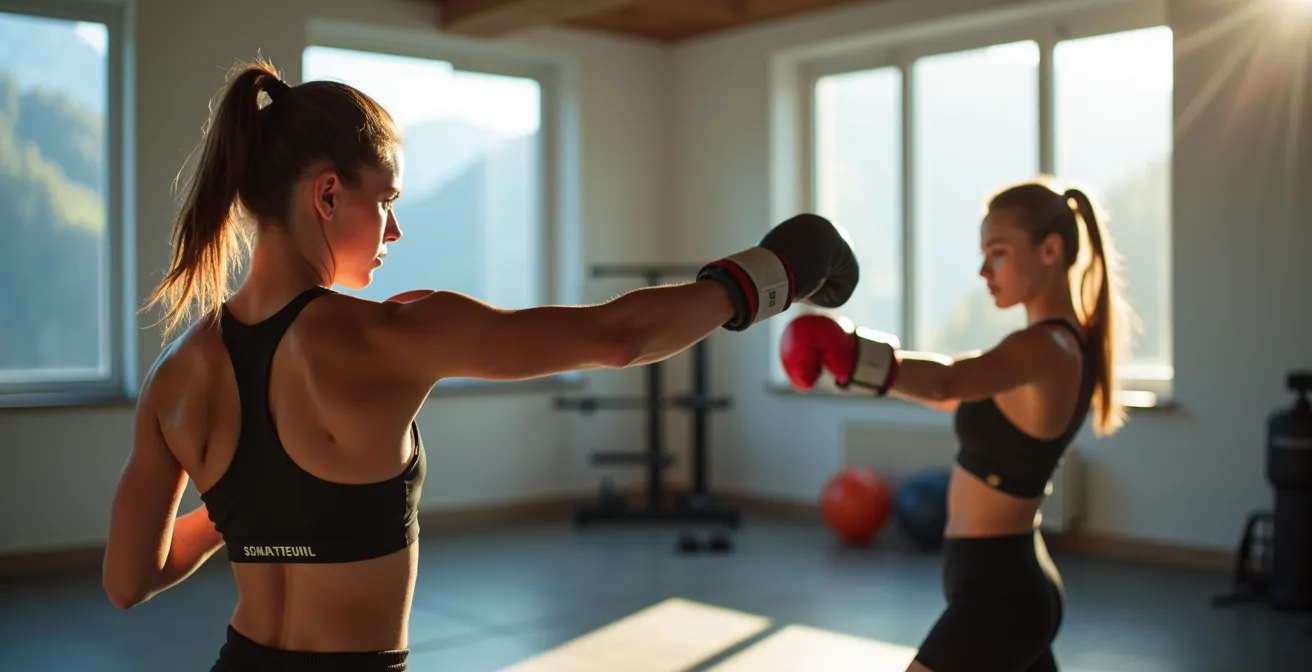 Cette pratique est même utilisée comme technique de visualisation dans des contextes exigeants comme le secteur tertiaire suisse. En s’entraînant dans le vide, les pratiquants apprennent à gérer leur stress et à atteindre un état de concentration intense, parfois appelé état de « flow ». Dans cet état, la conscience de soi diminue, les mouvements deviennent fluides et l’anxiété s’estompe. Vous n’êtes plus en train de penser à la peur de l’échec, vous êtes entièrement absorbé par l’exécution parfaite du geste. La répétition de milliers de mouvements corrects dans le calme de votre salon forge une confiance inébranlable. Le jour où vous décidez, si vous le souhaitez, de mettre des gants avec un partenaire, votre corps saura déjà quoi faire. L’appréhension est considérablement réduite car la technique est déjà ancrée.