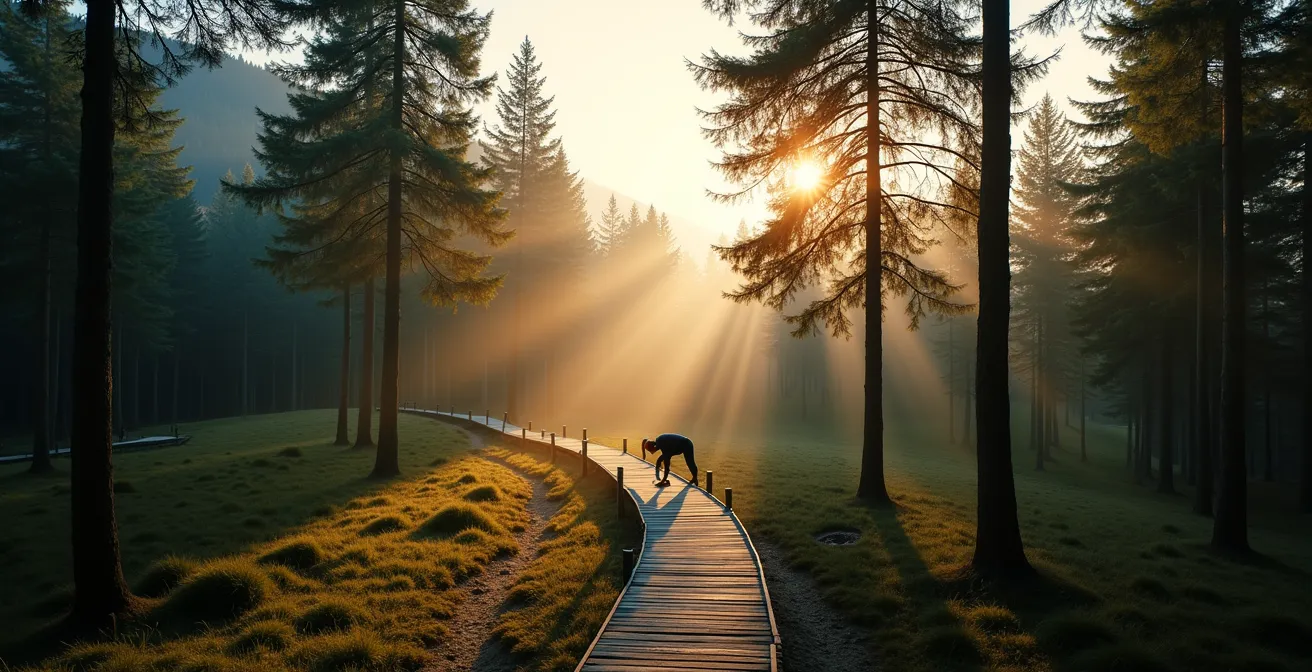 Quelle que soit l’option choisie, la récupération est aussi importante que l’effort. Terminez chaque séance par 5 à 10 minutes d’étirements doux et de respiration profonde, en profitant du calme de la forêt. C’est le principe du Shinrin-yoku, ou « bain de forêt », qui permet de faire baisser le cortisol et d’optimiser les bénéfices de votre entraînement. La combinaison de l’effort intense et de cette récupération consciente est la signature d’un entraînement intelligent et durable.
