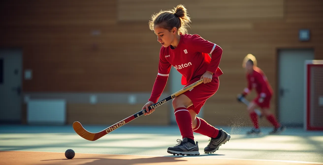C’est l’erreur classique du débutant, celle qui trahit immédiatement votre manque d’expérience et vous envoie sur le banc de pénalité. La règle du « jeu élevé » stipule que vous ne pouvez pas jouer la balle avec votre crosse au-dessus du niveau du genou. De même, après un tir (le « follow-through »), votre crosse ne doit pas dépasser la hauteur de votre hanche. Cette règle a pour unique but d’assurer la sécurité de tous les joueurs sur le terrain et d’éviter les coups dangereux au visage ou sur le haut du corps.